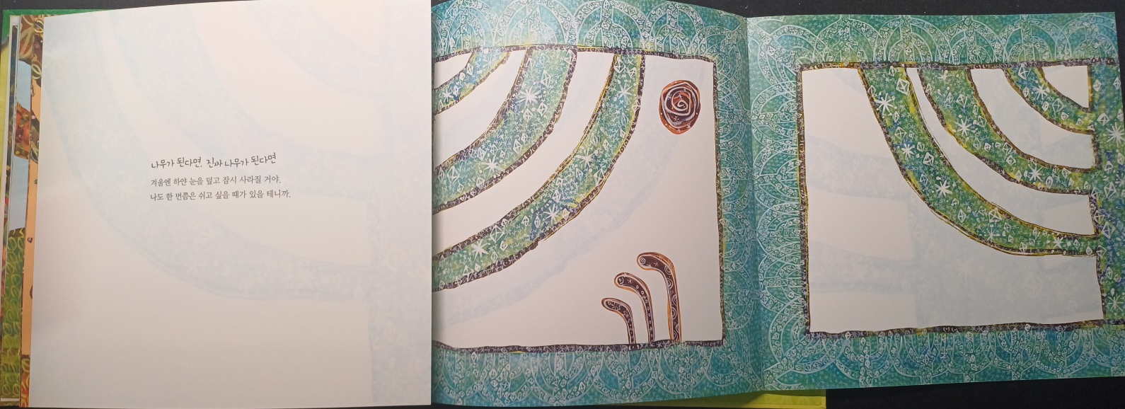 [진짜 나무가 된다면]은 어른이 봐도 기분 좋은 책이다. 새싹의 상상으로 풀어낸 이야기 속에서 많은 것을 배울 수 있다. 아이들과 함께 보며 새싹의 꿈을 통해서 자연의 섭리를 배우고 나의 꿈, 그리고 아이들의 꿈을 이야기 자연스럽게 알아가면 좋겠다. 글자의 크기를 달리하고 반복적인 이야기로 집중할 수 있게 만든다. 또한 펼쳐지는 책이라 아이들이 더 흥미를 가지고 본다. 천천히 조급할 것 없이 오래 보고 오래 생각해 볼 수 있기를 바란다. 무엇이 될지 모르는 새싹이 숲을 이루는 원대한 꿈을 가졌듯이 아이 어른 할 것 없이 모두 큰 꿈을 가지고 소중히 키워가길 응원한다.